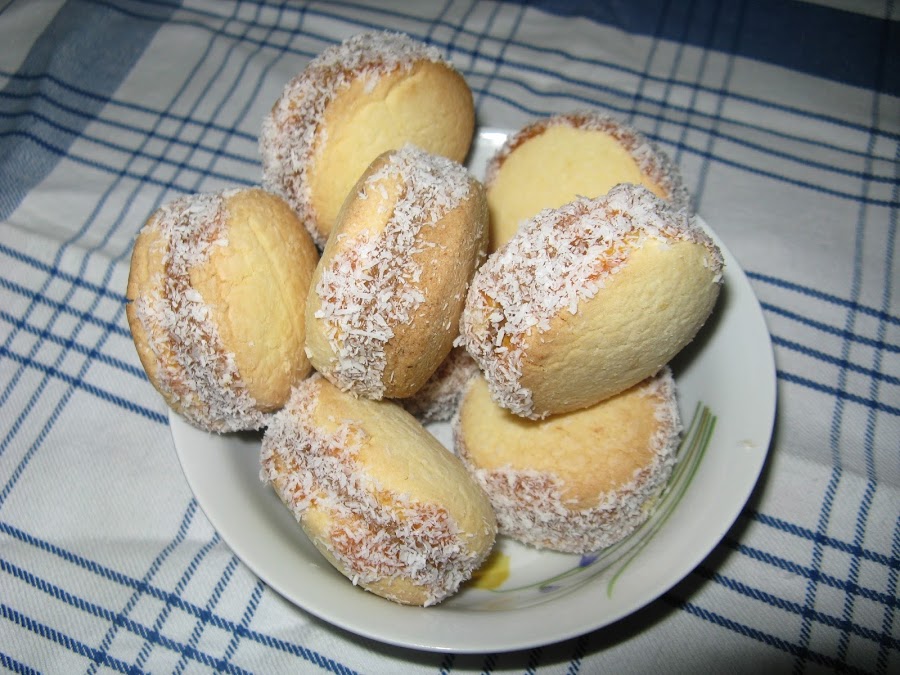 Para un bol tamizamos la harina, la maicena y el bicarbonato o la levadura química, una vez todo tamizado añadimos la mezcla hecha con la margarina, el azúcar, las yemas y la ralladura, mezclamos bien y hacemos la masa, acabamos de trabajar encima de la mesa.