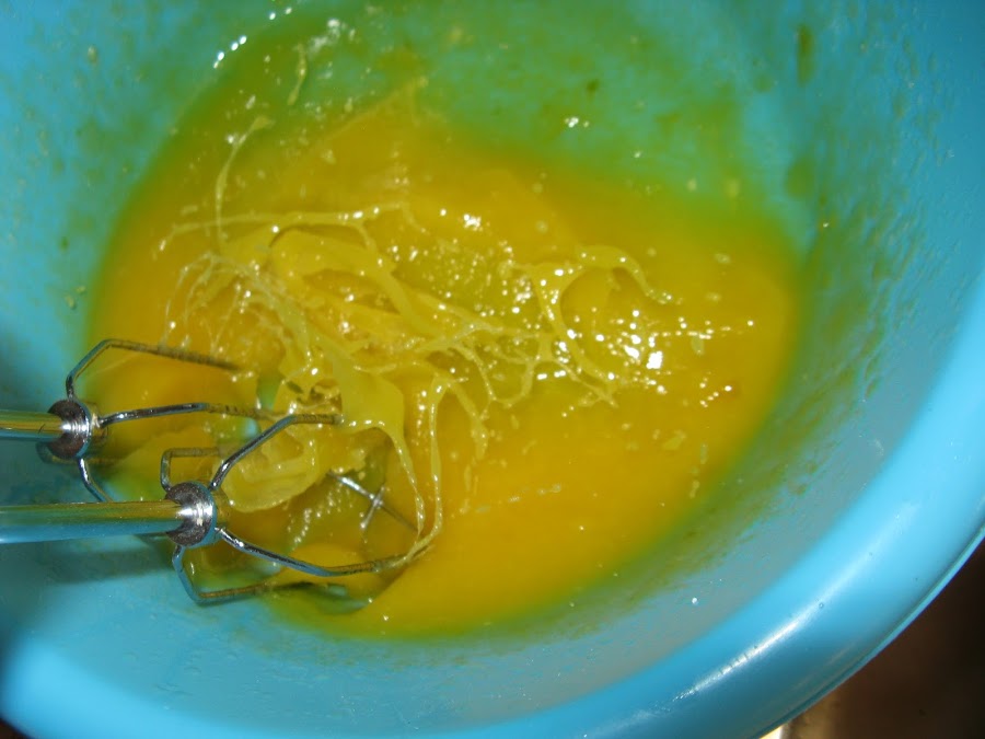 Usé mantequilla porque no tenía margarina, lo primero batimos bien la mantequilla o margarina con el azúcar, una vez bien batido añadimos las yemas y la ralladura que empleemos, seguimos batiendo y reservamos