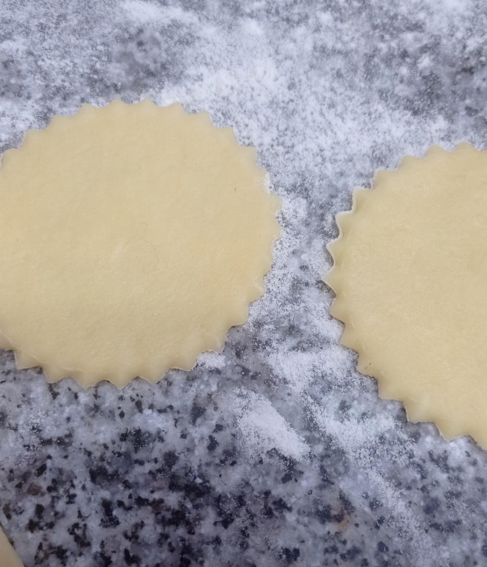 Retirar y comenzar a estirar, dejar de una altura de unos 2mm, y cortar con cortante redondo ( use de 6 cm).