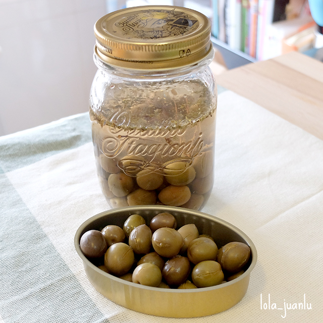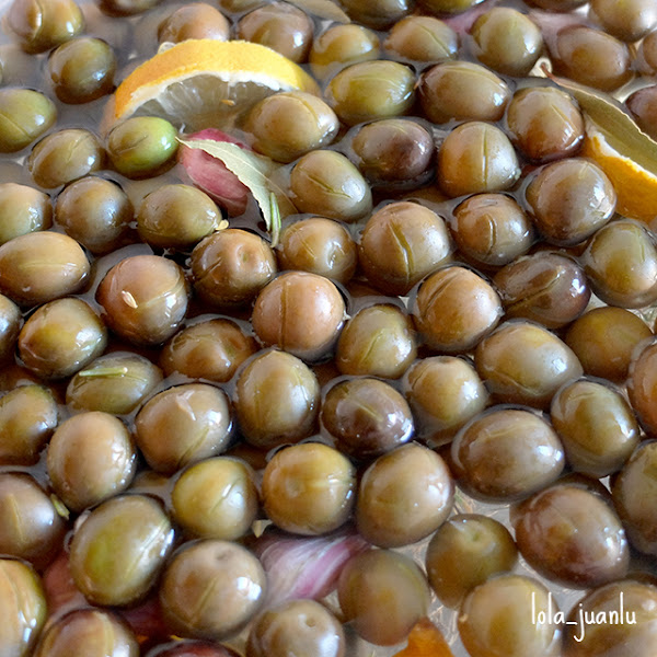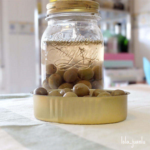 Tengo la suerte de que en casa, a veces tengo aceitunas aliñadas caseras, unas veces de mis padres, otras de mis cuñados, de mis vecinos, de mis tíos... y este año, me he decidido a aliñarlas yo.