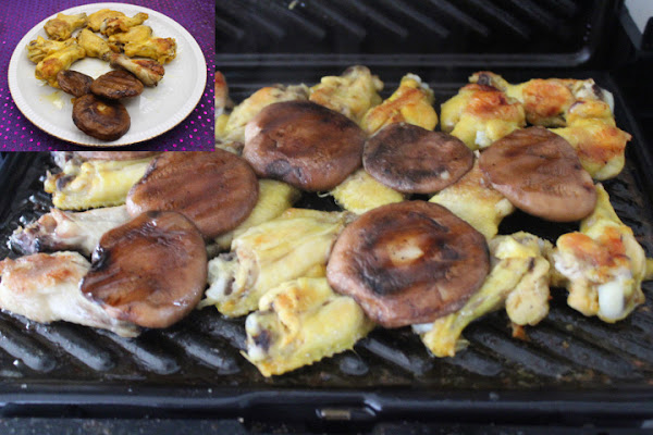 Cuando las alitas comienzan a estar tiernas añadimos las setas y cerramos el grill unos minutos más a 2/3 de su potencia.
