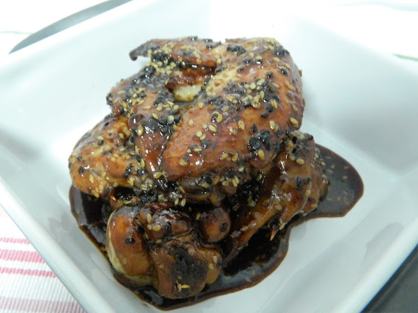 Cuando saquemos las alitas del horno las ponemos en la sarten para que se empapen bien de la mezcla de soja y servimos. Ya las tenemos listas para tomar, QUE APROVECHE