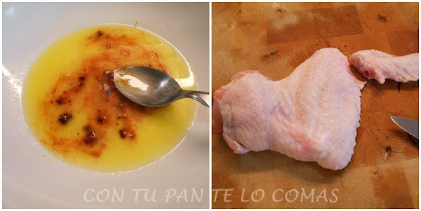 1. Limpiamos la alitas de pollo quitando cualquier resto de plumitas que puedan tener y les cortamos las puntas. Las salamos.