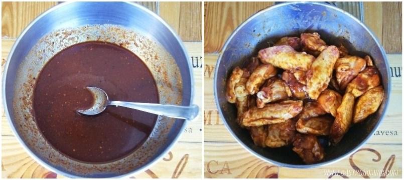 2. Ahora en la mezcla metemos las alitas y dejamos macerar al menos 2 horas.