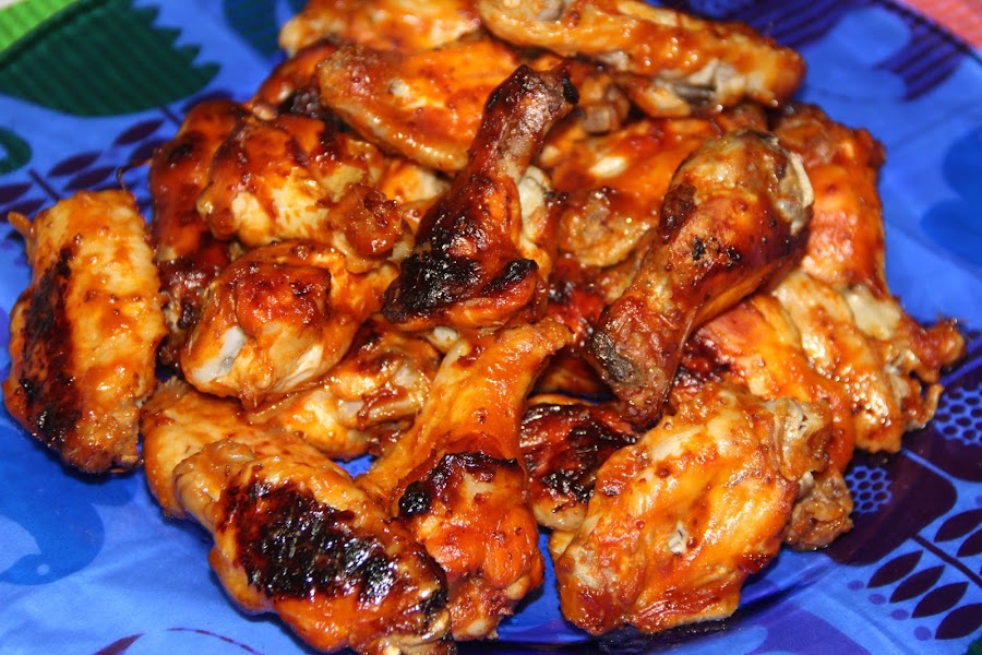 Salamos las alitas y con una brocha las untamos por los dos lados ,las metemos en el horno caliente a 180° y cada 10 minutos las daremos la vuelta y untaremos con más salsa.