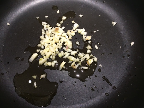 Pelamos y picamos 4 dientes de ajo.