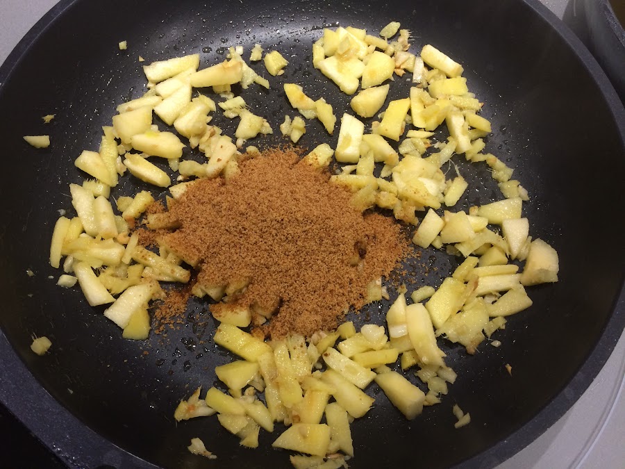 Incorporamos una cucharada sopera de azúcar moreno y lo dejamos caramelizar todo.