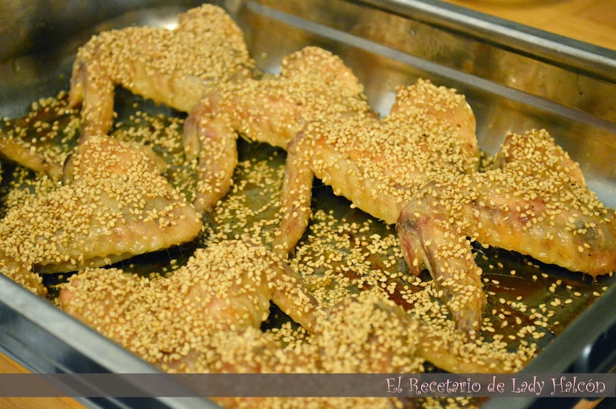 Sobre todo por que, como os hemos dicho antes, es de las que colocamos la bandeja en el horno y podemos salir corriendo a nuestro salón o terracita y olvidarnos de ella en una hora. No requiere que estemos pendientes del horno, de darles la vuelta, nada... solo unas pinceladas a la hora para darle un delicioso toque a miel y sésamo y listo.