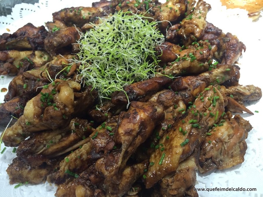 Yo para darle un toque crujiente a las alitas las he metido al horno durante 5 minutos a máxima potencia en el gratinador.