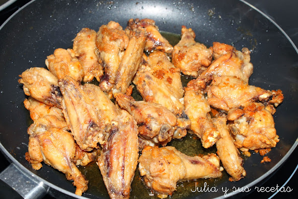 Si no las llego a probar no me creo lo ricas que están!! Cuando las vi en el blog de mi querida Carol ,"Carol y su espejo", me dije... tienen que estar muy buenas!!, tenía el cumple de mi hija en puertas y como se hacen el día de antes me pareció un aperitivo perfecto, todo lo que sea dejarlo hecho el día de antes nos facilita las cosas...Pues la gracia de esto es que se me olvidó sacarlas...y al día siguiente cuando las vi..!!.mi madre, había hecho muchas alitas!!! íbamos a estar comiéndolas durante toda la semana... jaja, pues no, casi se terminan ese mismo día, ¡¡Que buenas!! cuanto mas comes mas quieres comer.