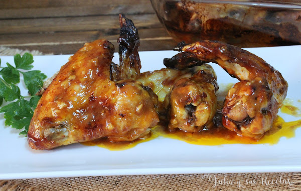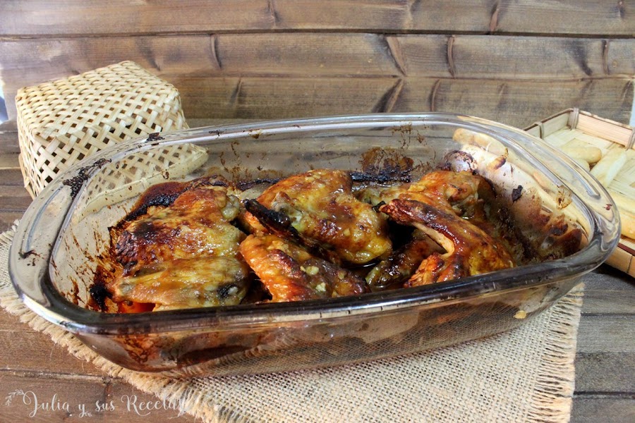 Se lo echamos a las alitas , las impregnamos bien y las metemos al hornos precalentado a 180º unos 30 minutos,a mitad del horneado les damos la vuelta.