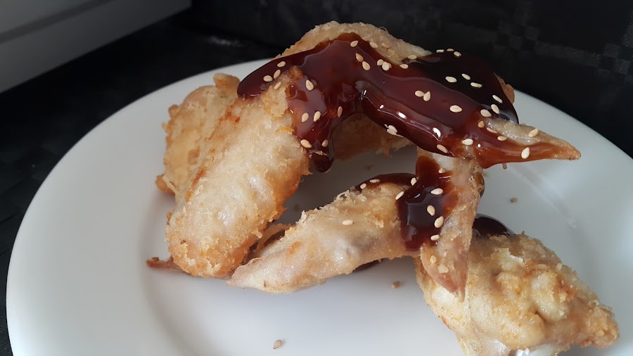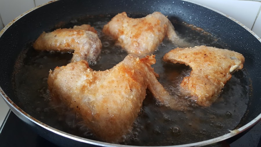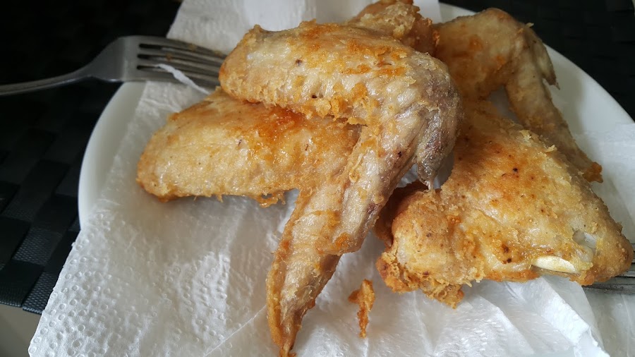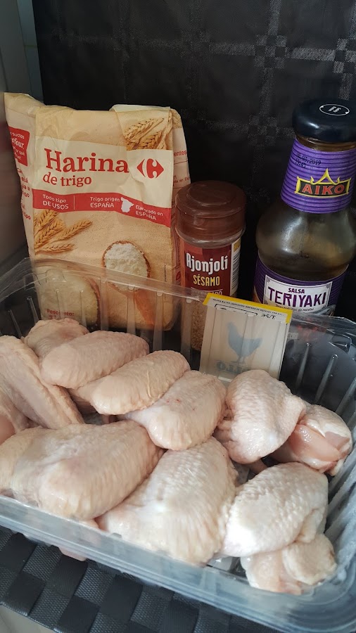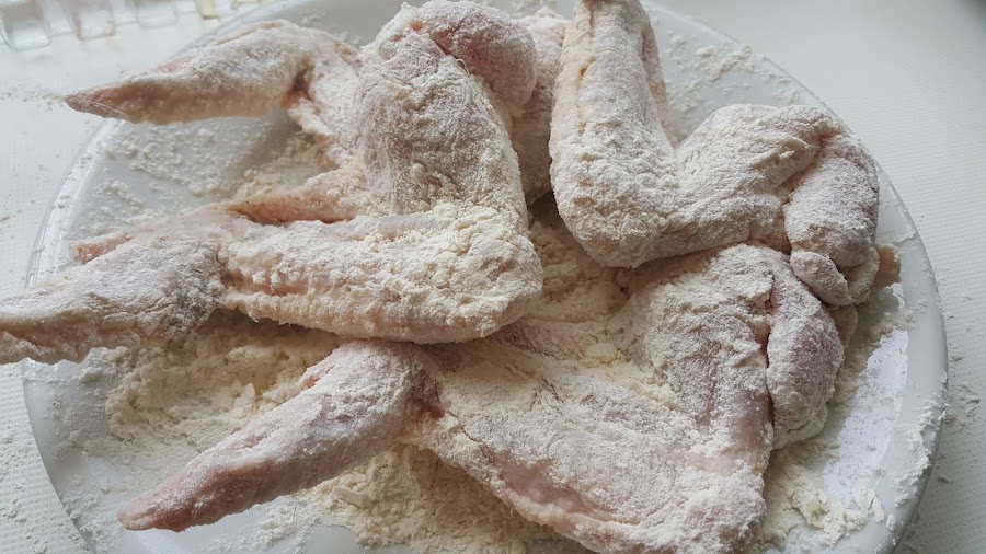 - sal y pimientaLo primero que haremos será asegurarnos de que no queda ninguna pluma en las alitas y salpimentarlas para seguidamente enharinaras.