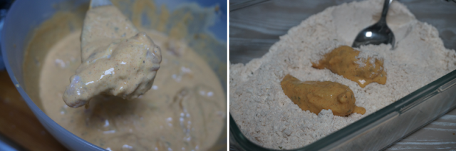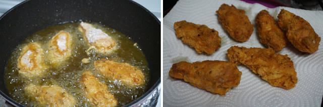Es importante que se quede el pollo rebozado en la masa y luego en la harina esto formará una capa crujiente.