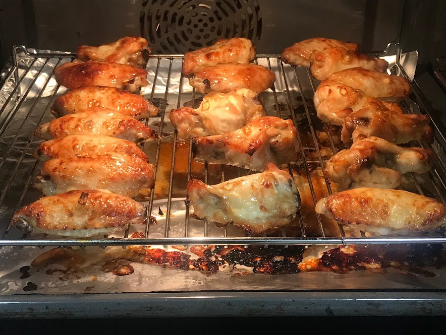 Pasadas las dos horas colocamos las alitas sobre la rejilla del horno y horneamos a 150º 60 minutos por cada cara.