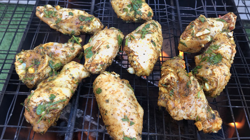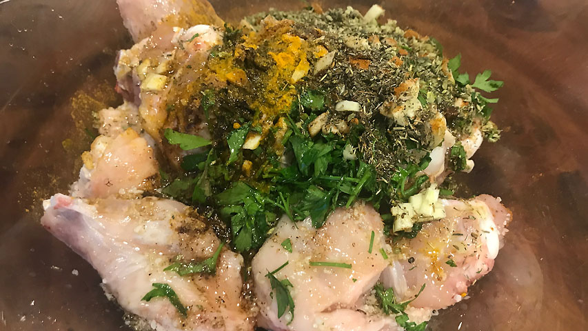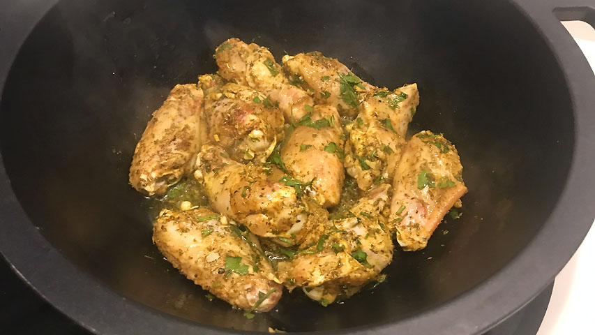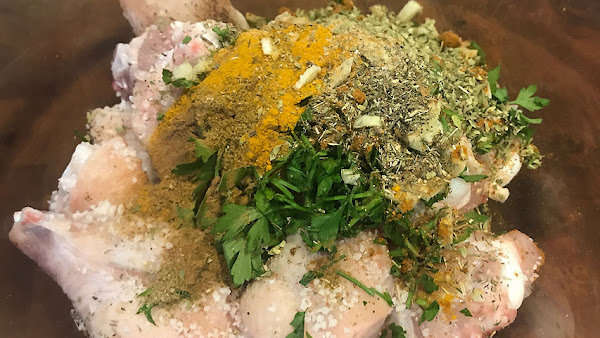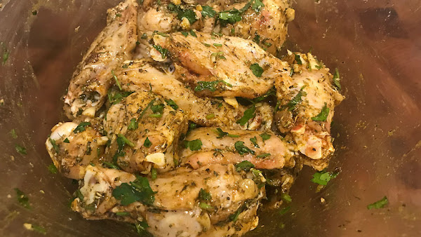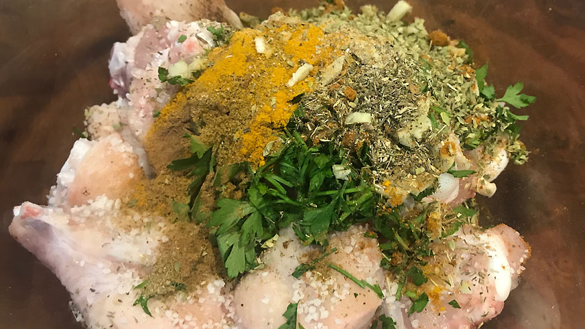 Sazona las alitas y vierte sobre ellas todas las especias, el aceite y el zumo del limón.