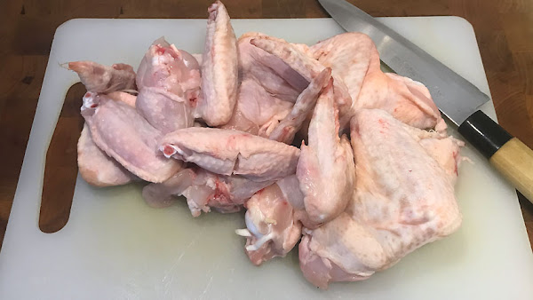 Corta las tres partes de las alitas y desazte de la punta.