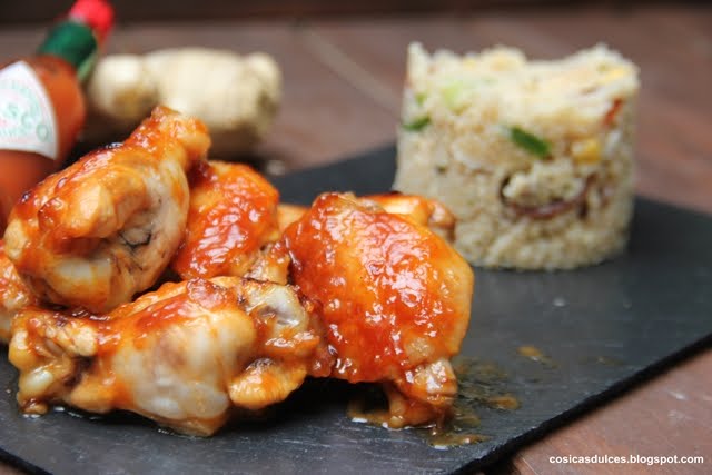 De entre todas las formas de preparar las alitas este es el modo estrella a la hora de hacerlas en casa. Es una receta bastante económica que, además, se prepara en un momento sin ensuciar apenas utensilios por lo que es difícil negarse a prepararlas. Además, si las alitas no os entusiasman podéis seguir la misma receta del laqueado para otro tipo de carnes, por ejemplo, unas costillas o incluso algunas otras partes del pollo. La receta tiene un claro sabor oriental: una mezcla agridulce a la que es complicado resistirse. Yo ayer las preparé acompañadas de una ensalada de quinoa aunque otra opción deliciosa es cocer un poco de arroz y verter sobre él la salsa que las alitas sueltan durante el horneado. Receta adaptada de Directo al paladar. Espero que os gusten.
