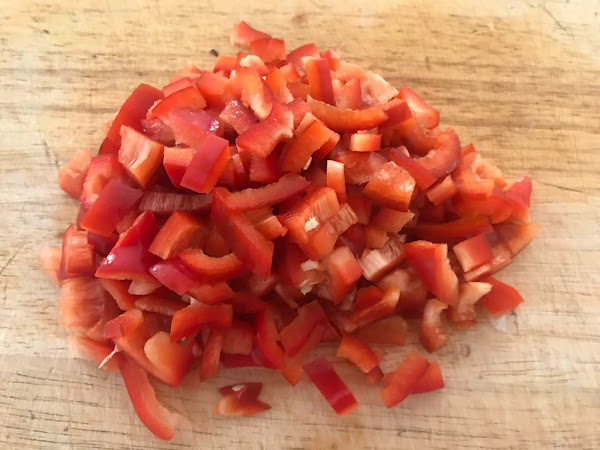 Picamos el pimiento rojo e incorporamos al bol
