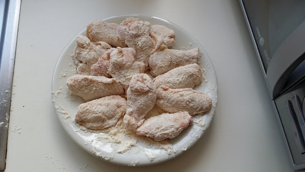 - salsa de yogur (opcional) Lo primero que haremos será enharinar las alitas de pollo, para hacerlas un poco más ligeras, se puede quitar la piel y no pasar las por harinas, friéndolas directamente, pero deberéis dejarlas más tiempo con la salsa para que penetre el sabor.