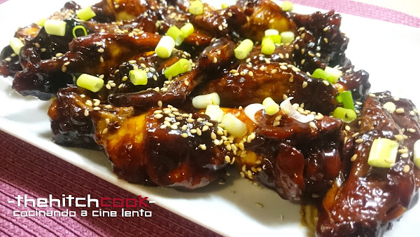 Pronto retomara las cine-recetas (que son el sello de esto) pero para ir abriendo boca, os dejo unas espectaculares alitas de pollo con teriyaki que os harán relamer los dedos hasta la falange. No miento si os digo que todo ese dulzor, esa "pringosidad", esa espesura aromática, hace salivar el paladar más crítico. Lleva su tiempo conseguir que la carne se desahaga como la mantequilla en vuestra boca, pero la paciencia manda en esto de los fogones, así que armaros de ella, disfrutar de los olores, de los sabores y de la compañía que tengáis cerca. Una receta ideal para celebrar buenas vibraciones.