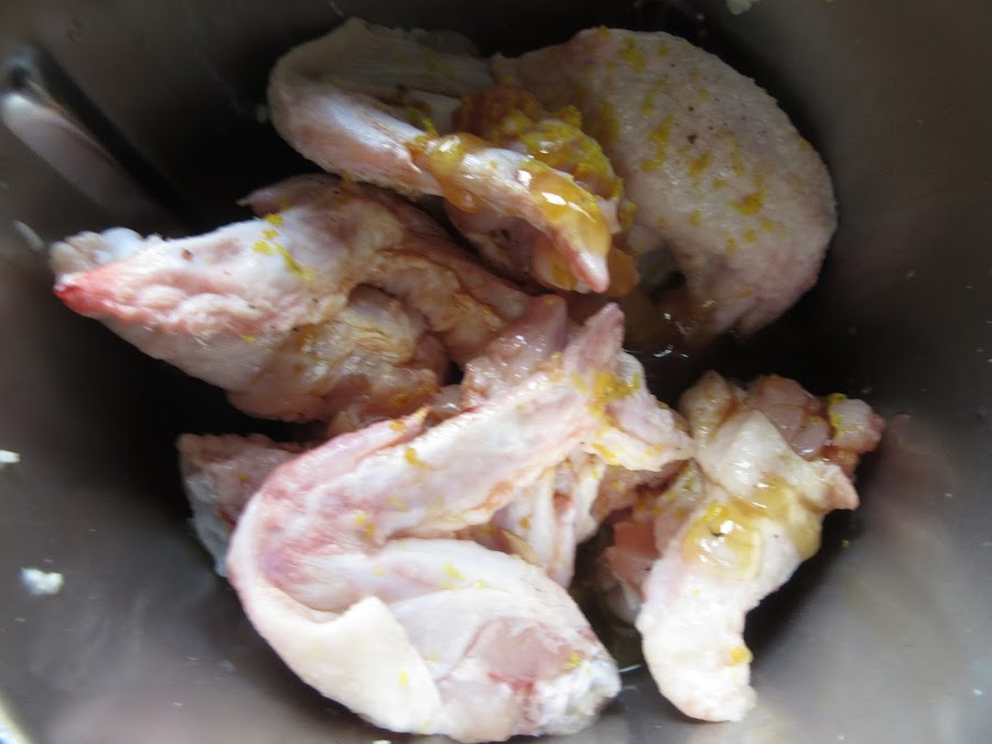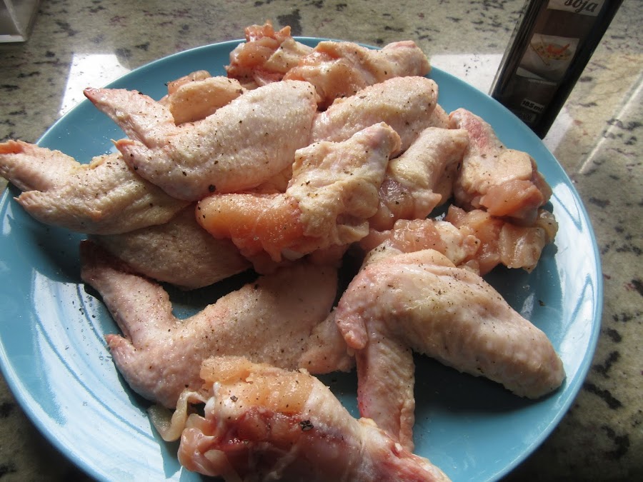 1- Salpimentar las alitas cortadas en dos. Reservar.