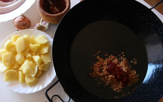 Añadimos la pulpa de ñoras y mezclamos.