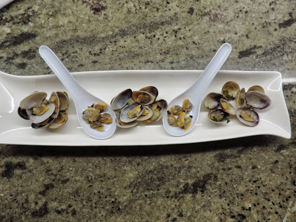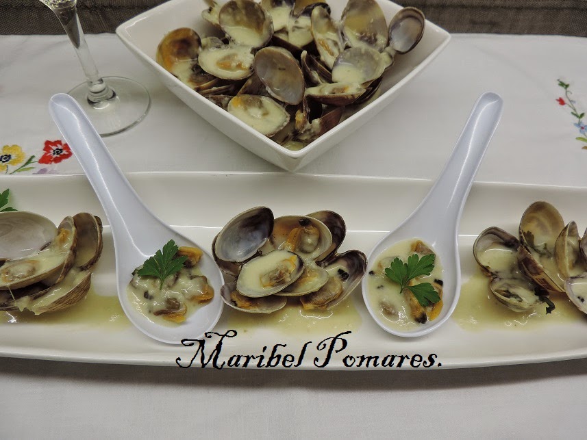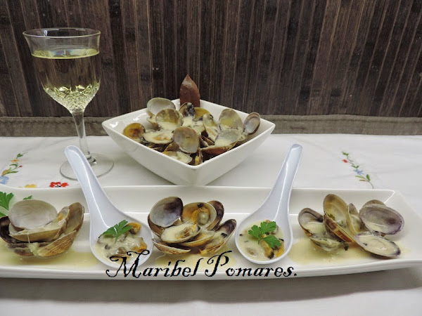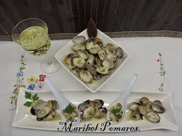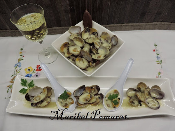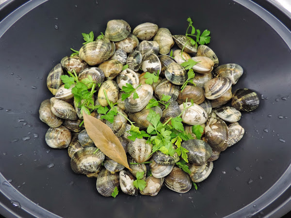 Poner las almejas en el recipiente de varoma, con ajos, laurel y perejil.