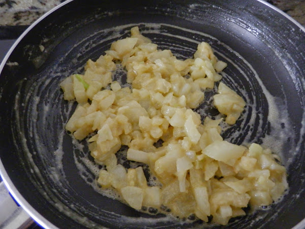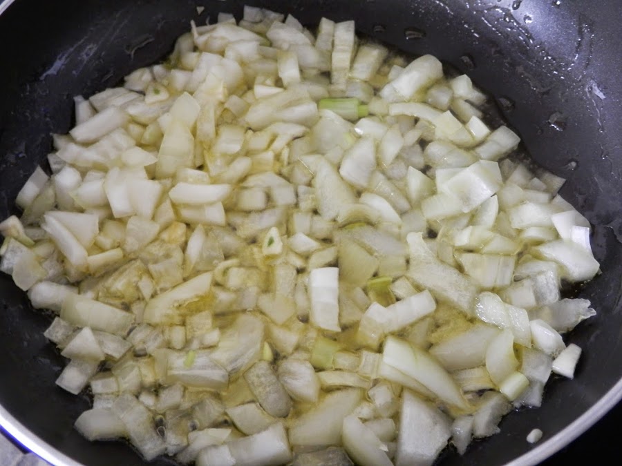 Ponemos aceite en una sartén y sofreímos la cebolla y el ajo.