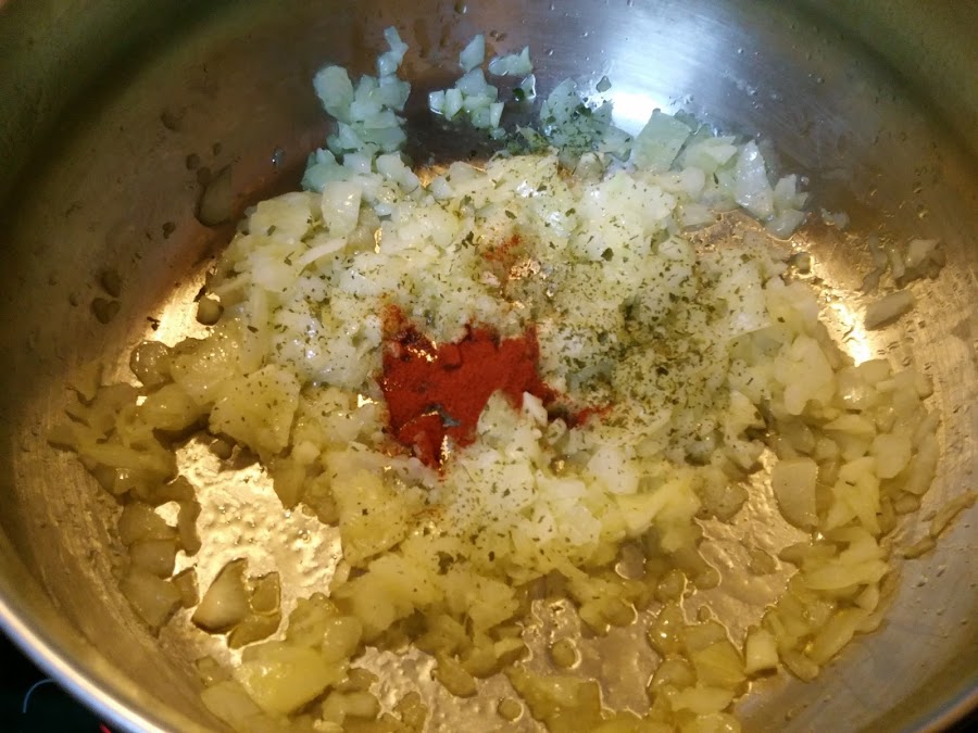 Apartamos del fuego y echamos una cucharadita de pimentón. Removemos.