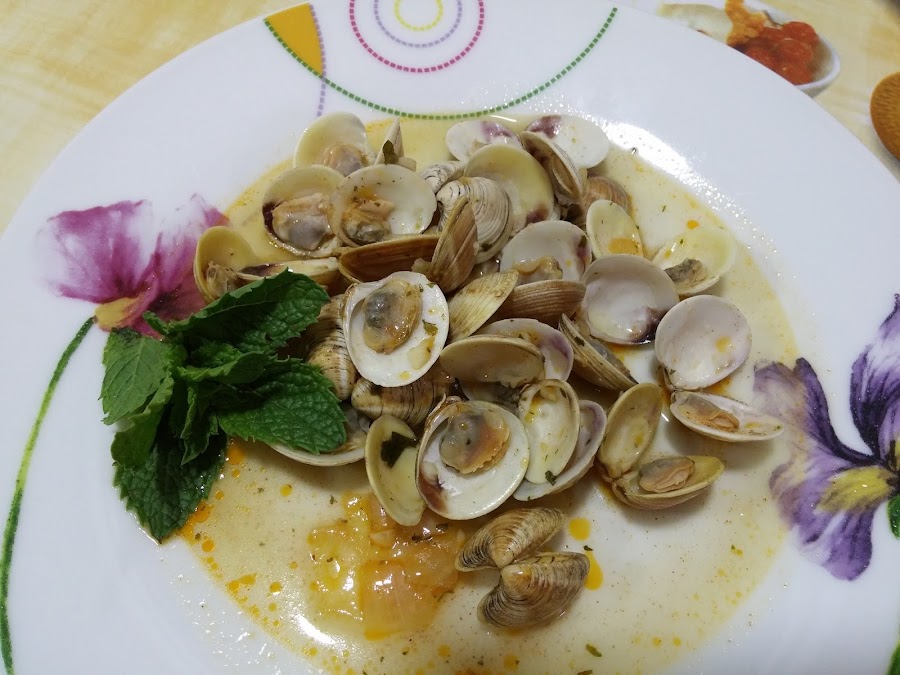 Dejamos las almejas en remojo con agua y sal unas 2 horas, para que suelten la arena.