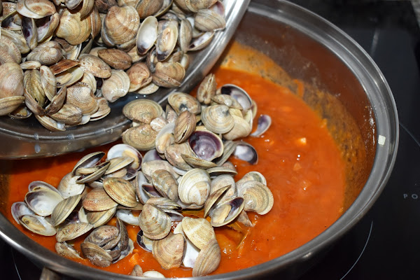 Añade las almejas a la salsa.