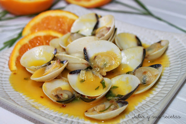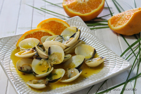 Las almejas con naranja es una forma diferente de comer este molusco. Es muy fácil y con pocos ingredientes. La naranja le aporta una dulzura a la salsa tan buena que no dejarás de mojar hasta que se acabe la salsa. No lleva agua, solo el zumo de naranja y el jugo que ellas aportan.