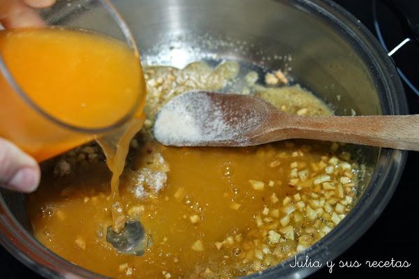 Seguidamente ponemos el zumo, sal y pimienta y el perejil picado.
