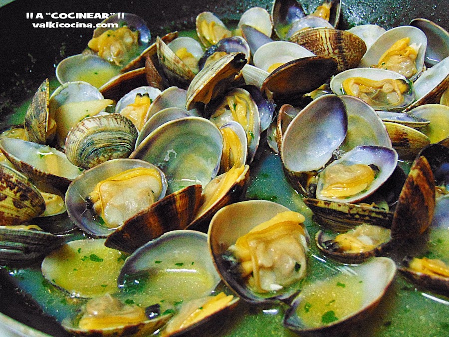 Tapamos y dejamos cocer hasta que habrán. No las dejes cocinar demasiado porque la almeja se retraen y pierden toda la gracia. En dos o tres minutos máximo deben estar abiertas.