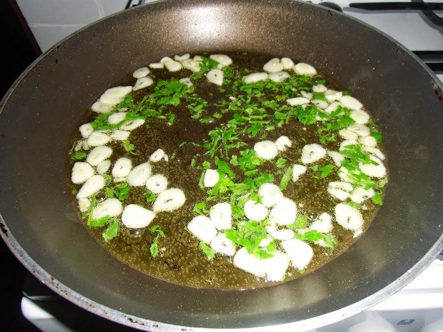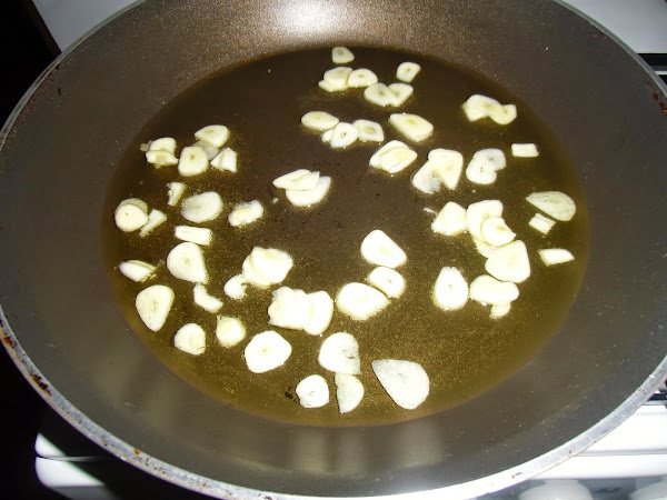 En una sartén con un poco de aceite de oliva vamos salteando los ajos cortados a láminas