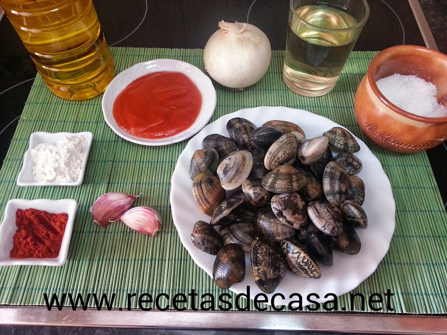 Lavamos las almejas con agua abundante y las dejamos en remojo una media hora.