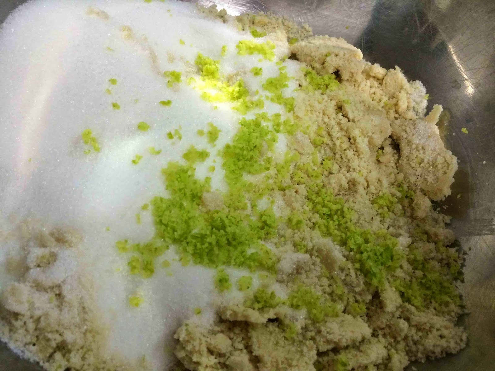 Comenzamos mezclando bien la almendra molida con el azúcar y la ralladura de limón.