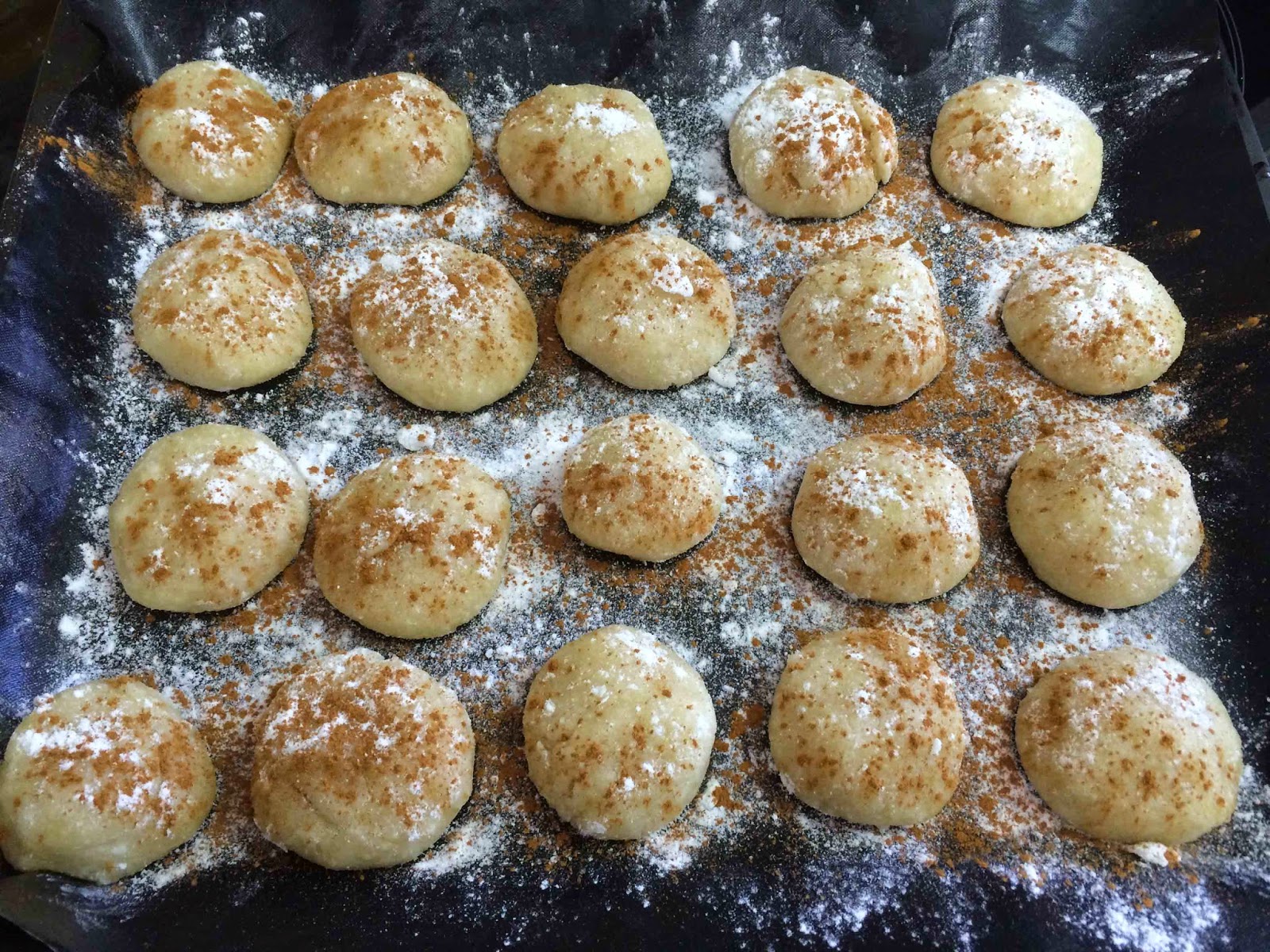 Se van colocando en una bandeja forrada de horno. Dejad espacio entre las bolitas ya que al cocerse tienden a unirse.