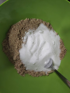 a continuación incorporaremos el azúcar y mezclamos bien con la almendra,