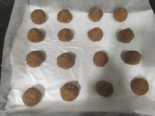 luego incorporáis el segundo y volvéis a mezclar y a lo mejor no hace falta el tercero porque la masa ya esta bien, no tiene que quedar una masa pastosa, si veis que hace falta incorporar el tercer huevo mi consejo es que lo batáis en un cuenco a parte y incorporéis una cucharada, mezcláis y si veis que hace falta más pues otra cucharada pero no lo pongáis todo porque seguramente se os haga muy blanda la masa y luego cuando metáis las bolitas en el horno se espachurran, a continuación cogeremos y haremos bolitas con la masa dándoles al final un poco forma de montañita (el tamaño ya es a gusto del consumidor, pero no las hagáis muy grandes porque sino a la hora de hornear se pueden quedar crudas por dentro y quemadas por fuera), bueno una vez hechas las ponemos en la bandeja del horno, colocamos papel de hornear y las colocamos separadas para que no se nos peguen entre sí,