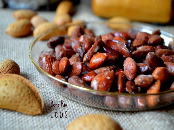 La receta en sí la vi hace tiempo por varios blogs hecha siempre con nueces,pero ante el excedente de almendrasque tengo, decidí probar y el resultado igualmente es exquisito.