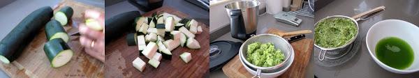 Lavar y trocear los calabacines. Rallarlos o triturarlos con un procesador de alimentos y dejarlos escurrir para que suelten agua durante unas 6 horas.