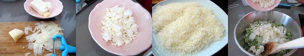 Colocar los calabacines en un bol y añadir el queso manchego y el queso feta y mezclar.