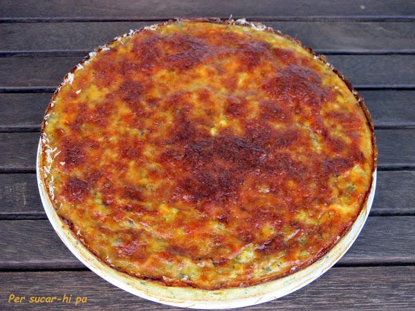 Verter la mezcla en el molde y repartir por encima el queso parmesano rallado. Cocerlo en el horno a 180º durante unos 25 - 30 minutos, vigilando que no se queme el gratinado.