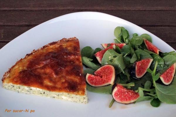 En esta interpretación del almodrote, que conocimos en Tortosa de la mano de Núria Bàguena, el elemento vegetal es el calabacín, y además de huevo incorpora tres tipos de queso: feta, manchego y parmesano.