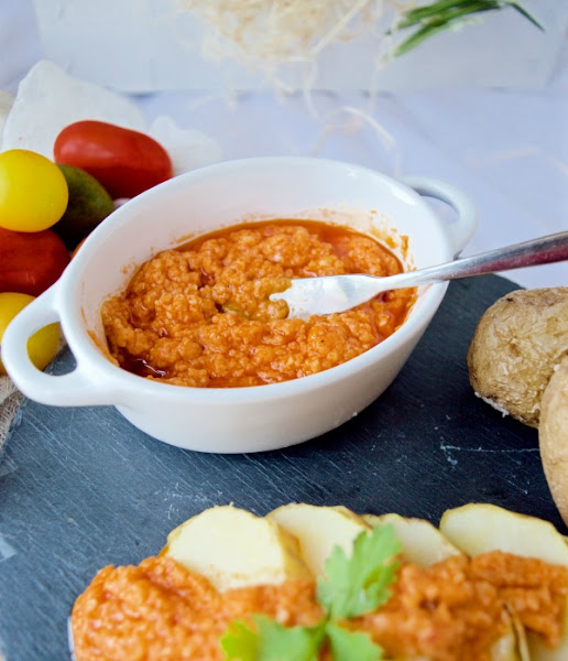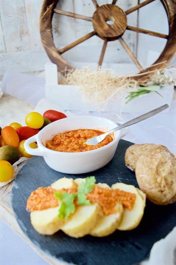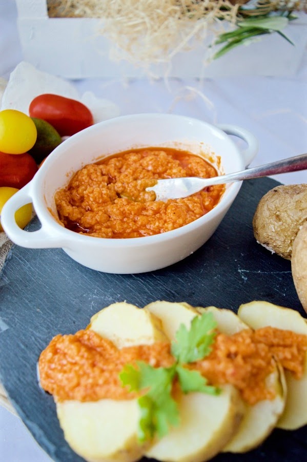El almogrote es un mojo con textura de paté típico de la isla de La Gomera en las Islas Canarias. Se toma normalmente como picoteo acompañado de pan, pero hoy nosotros lo hemos querido unir a unas papas arrrugás (patatas arrugadas) también típicas de la cocina canaria.