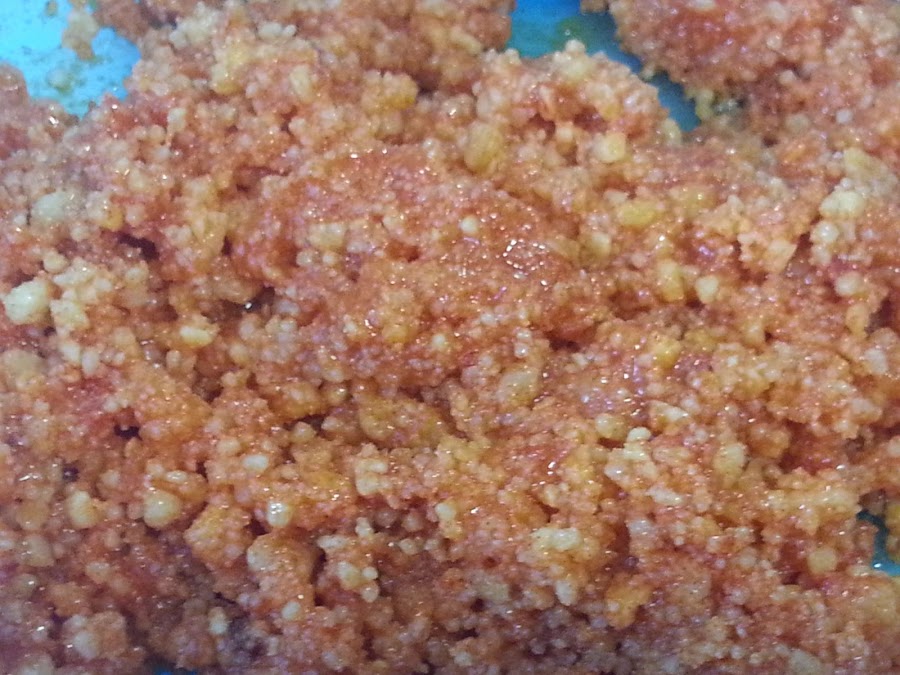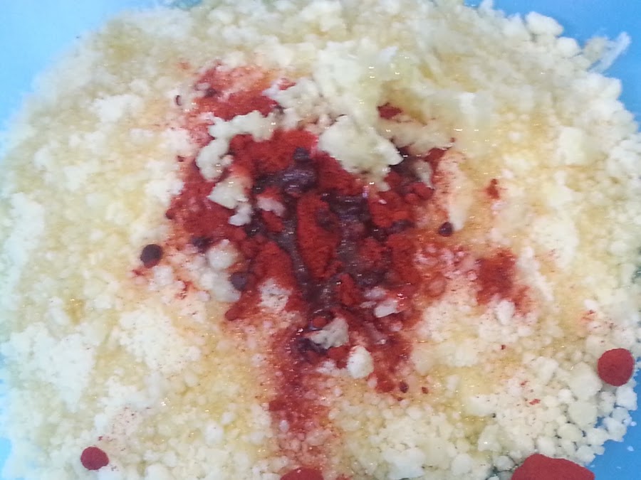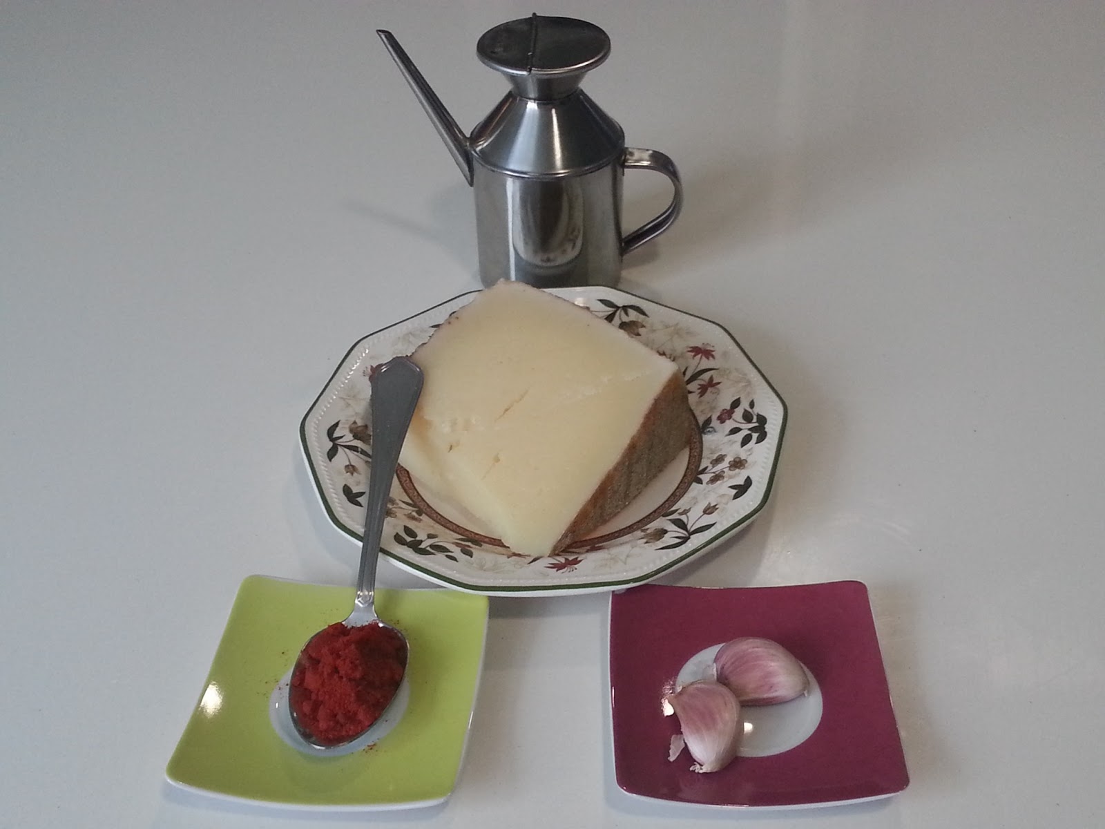 3. - Mezclamos el queso, el pimentón y el ajo, y vamos añadiendo aceite hasta que quede una pasta.