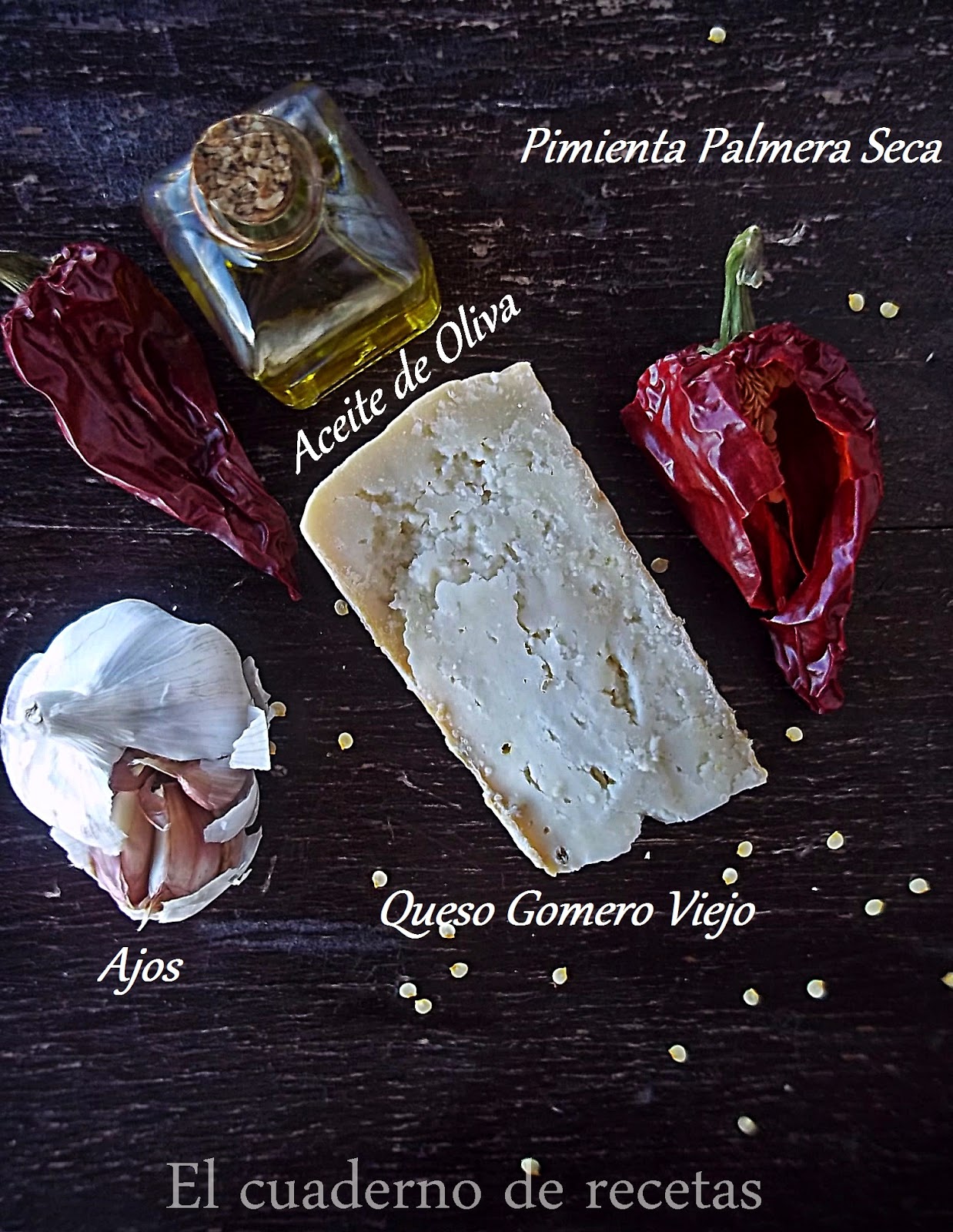 *** Como el queso gomero fuera de Las Islas es difícil conseguirlo, se puede sustituir por queso de cabra que sea viejo.