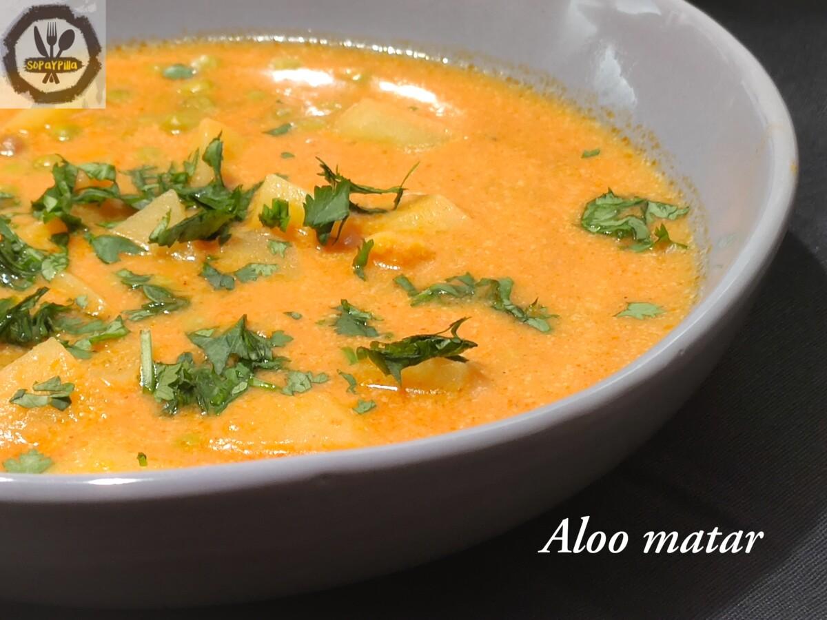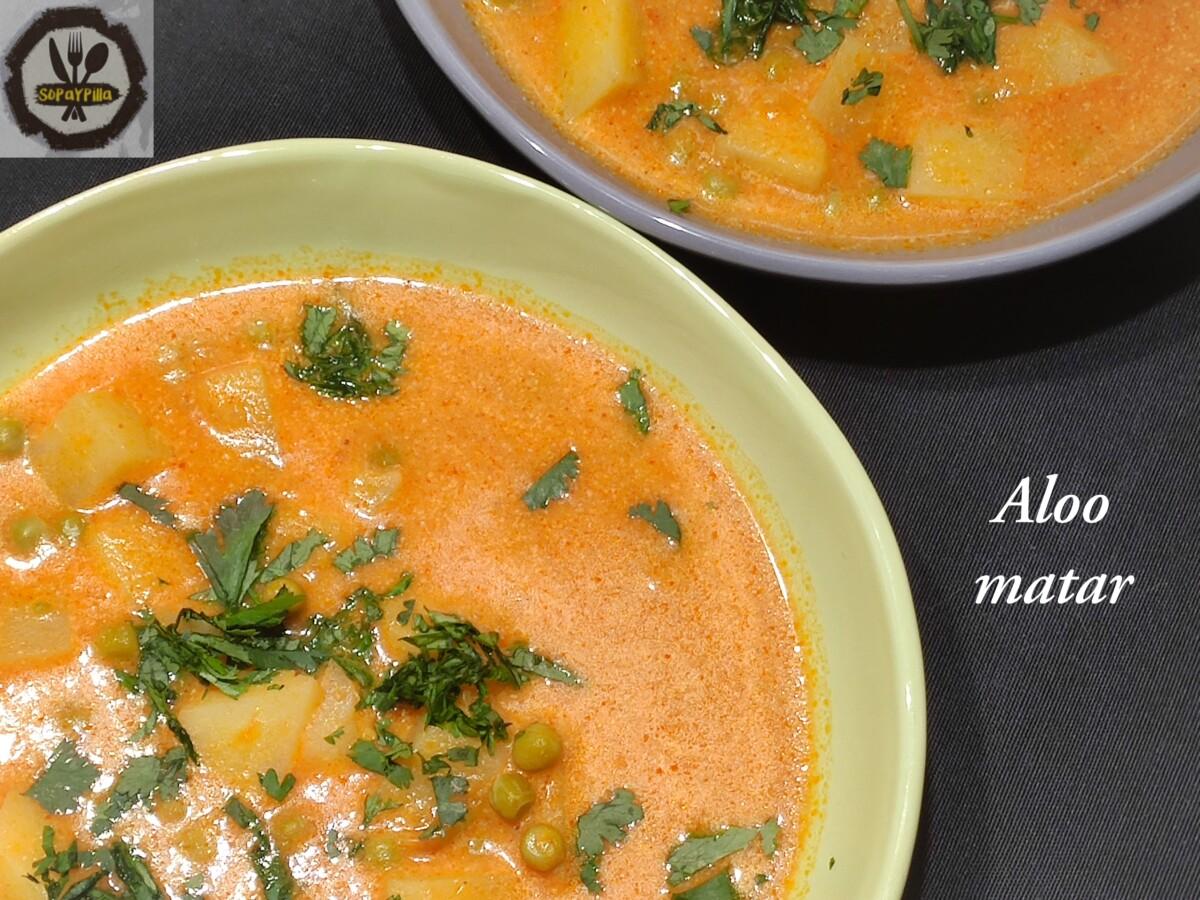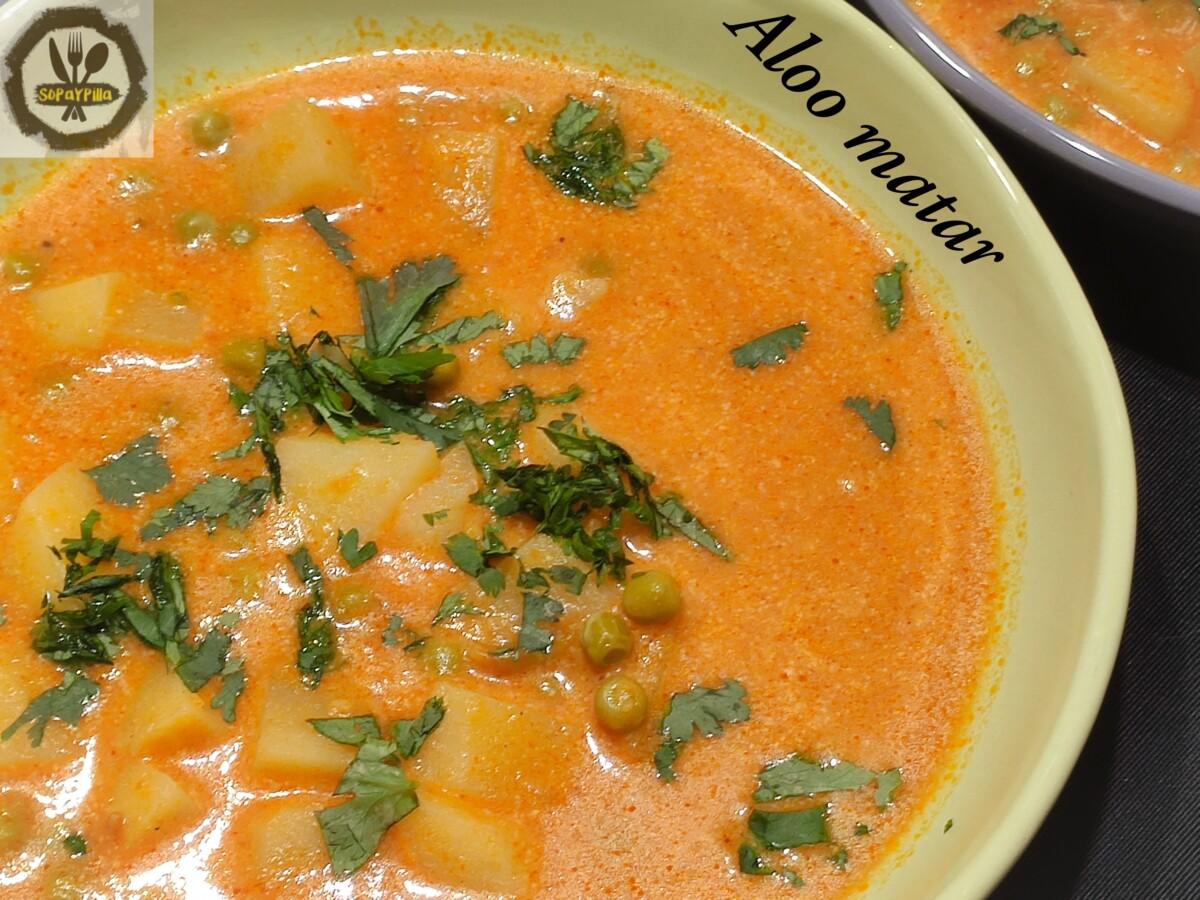 Lentrada Aloo matar (plato indio vegano) ha aparegut primer a Sopaypilla.