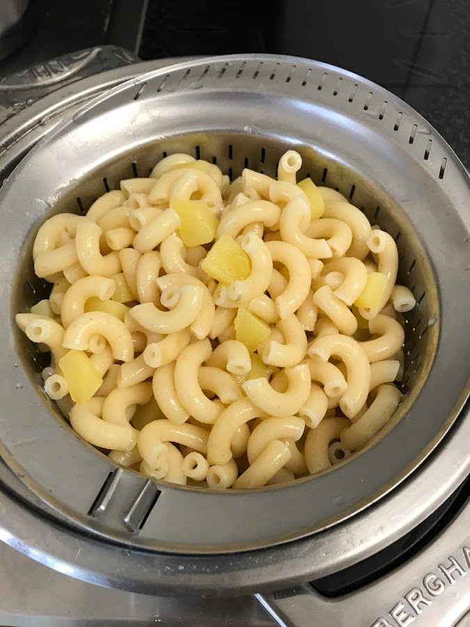 Introducimos los macarrones en la olla de las patatas y la hervimos a nuestro gusto.